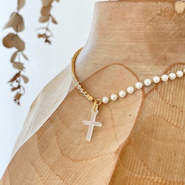 cross pearl necklace_十字架珍珠項鍊 5mm淡水珍珠