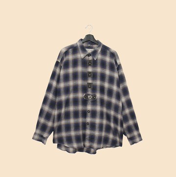 Back to Green- 巴伐利亞歐式襯衫 刺繡花 灰藍格紋vintage b-02