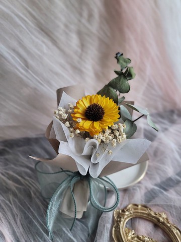 【畢業花束】太陽花畢業花束/向日葵畢業花束【尺寸】 寬約14cm,高約23cm(含包裝紙)🌟🌟🌟急件請私訊詢問🌟🌟🌟提袋照片請私訊,若需加購提袋也請私訊小元素皆採用日本進口永生玫瑰,擁有高品質及較高的穩定性,可保存1-3年,其他乾燥花適當保存可保存數月至1年。如有任何商品問題歡迎私訊客服【注意事項】所有商品皆為下單後才開始製作,依照下單順序製作,最慢2星期內會出貨,如有急件可詢問客服,酌收急件費為維護雙方權益,一律下單後製作,請勿取消宅配無法保證隔日送達,請預留2天的運輸時間,部分偏遠地區及離島宅配需加價,寄出當天會私訊告知花束皆會妥善包裝,如運輸過程有少量花材掉落皆為正常,不介意再購買自然植物產品,彎折掉落或顏色尺寸差異皆為正常現象,不屬於瑕疵範圍。螢幕顯示或加工批次皆可能導致色差,圖片僅提供參考,顏色皆以實品為準。