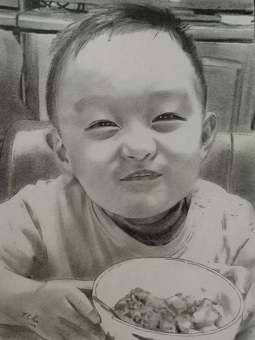 小朋友的畫(含背景) / 鉛筆素描 / 人像素描 / 半身人像 / 含框