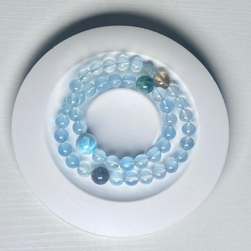 【正佳珠寶】海藍寶 頂級冰質透藍 9.8-10.3mm 海藍寶手珠
