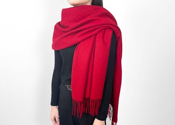 100%羊毛圍巾/寬圍巾/ 大披肩 / 長圍巾/秋冬保暖 紅色款