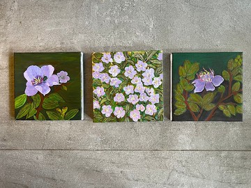 方形畫框原畫。僅此一幅 為了創作更多作品,我們的老媽決定開始割愛畫作,以維持持續創作的動力,每幅都是壓克力親筆繪製。希望新主人會喜歡:-)*作品尺寸:三幅原作 20x20cm (其中ㄧ幅厚度約2cm)*注意事項: 著作權仍屬本人,請勿任意印製販售三幅系列原畫 / 雙溪·野牡丹 Melastomataceae - 老媽的畫作.━━━━━━━━━━━━━━━.|老媽的畫作系列|老媽一筆一畫,以壓克力爲繪畫媒材繪製她的藝術創作 ❤️產地/製造方式Made In Taiwan / Designed by haoriji-workshop/ 老 媽 的 經 歷 /Daylily -傳統的臺灣女性,年輕時為家裡無悔的付出退休後的生活,我們鼓勵她重拾畫筆,無師自通的她,揮灑顏料,盡情創作 ❤️