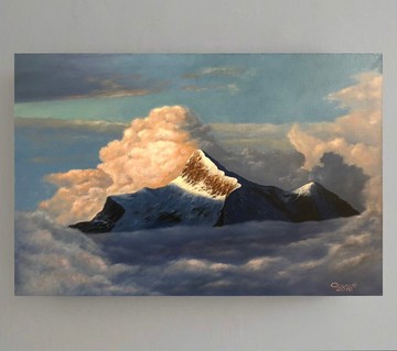 原始油畫在帆布山風景雲彩繪畫天空藝術品