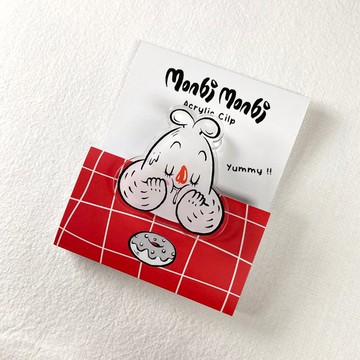Monbi's Table - Doughnut 文具夾子( Yummy!! )材質|透明壓克力印刷|雙面印刷尺寸|約5.5cm(高)《怪怪Monbi》他有著肥肥白白的身軀,一個倒轉的愛心形鼻子(會隨着不同的情緒去變化),還有一對靈敏的大耳朵。他的樣子怪怪,情緒也怪怪,但世界就是需要這一些怪怪才更添趣味~