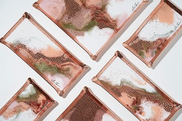 溫柔堅定 玫瑰金方形錘盤溫柔,耐心,堅定不移的幸福是因著愛的付出一點一點的累積有時候過程可能是痛苦也可能不如預期但這些過程如同每一片金箔卻是如此閃耀的光芒重視生活質感的你,一定也喜歡手工製作、唯一且獨特的 33 creation作品生活與藝術的結合流動的鑽瓷樹脂在時間與粉末的變化下形成每一款獨一無二的托盤將香氛蠟燭,香水擺上,襯托你的生活品味時常配戴的的飾品,擺在托盤上,顯得更加耀眼擺在玄關上放零錢、鑰匙,讓客人一入門就能看見你的好品味我們期待成為你生活的一部分也希望,你能喜愛並擁有這獨特的藝術作品*33 提醒:即使同色系,每款作品的紋路依然是獨一無二的喔!