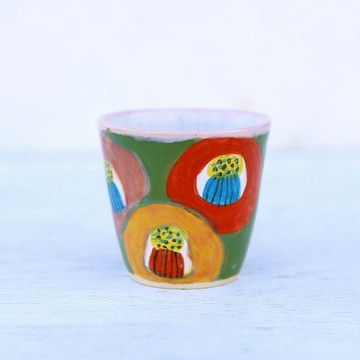 陶藝手工手繪直徑 8.5 厘米 高度 8 厘米這是一個免費的杯子,其設計可以讓您盡情享受山茶花。這是一道色彩繽紛的流行菜。顏色濃重而明亮,但由於是在陶器(陶器)上著色,因此顏色比圖像更柔和,並且色調是手繪的。此杯內穿啞光白釉。它不是一個完美的圓形,而是一個小橢圓形並且有變形。它是手工製品。* 與瓷器不同,陶器(陶器)具有柔軟溫暖的瓷皮。另外,可能會有針孔(釉孔)和小釉剝落,使用上沒有問題,但這些也是“陶器”的特點,希望大家喜歡。是陶器特有的殘缺之美吧?陶器是土質的,所以當你拿起實物時,它給人的印像比圖像中的圖像更簡單。但是,如果只是一開始就習慣了,可以說是真品之美,質感與簡約自然會合得來。* 雖然這取決於您使用的終端,但圖像的顏色和實際顏色不會完全相同。我正在 PC 上調整圖像和銷售商品,但我的智能手機看起來更生動。最近,我正在嘗試將顏色與智能手機相匹配,但請理解圖像與實際顏色之間的差異。..