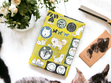 手作寶寶手冊布書套。固定式書衣。柴犬。橄欖綠