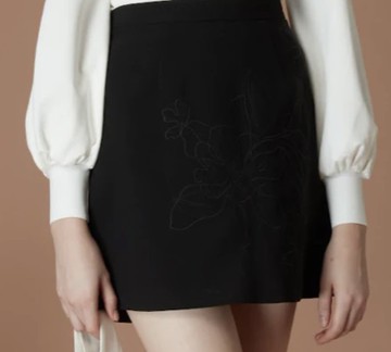 LAPEEWEE FW23 黑色花卉刺繡半身裙