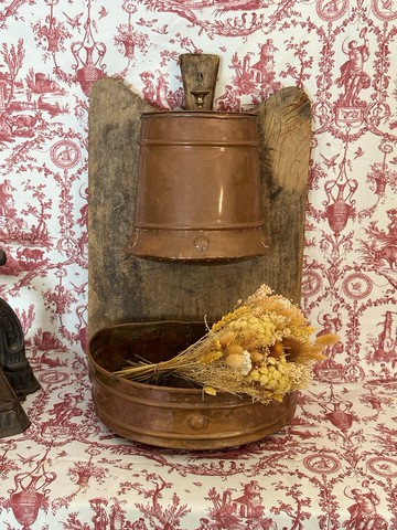 30833法國古董紅銅儲水器French antique red copper fountain美麗罕見的法國古董紅銅儲水器,在19世紀或20世紀早期用於家庭的飲水和儲水需求,如現代的自來水。裝飾家庭或商業場所擺設,都非常吸睛。‼️請注意:有歷史的刻痕與自然銅鏽,蓋子很緊,無法完全蓋到底,儲水器無水龍頭,無法實際使用,只適合裝飾與欣賞!任何問題,歡迎來訊。謝謝尺寸Size:水盆base 長25 x 寬W34 X 高H12cm儲水器tank 長20.5 x 寬W25 X 高H40cm水盆重量base Weight :1.4kg儲水器重量tank Weight :1.7kg總重量Weight :3.1kg材質Material : 紅銅copper Reference code : W40109-2-3-10❗️請留意:古董物件無論顏色與表面皆有歷史使用痕跡,若有任何問題歡迎請來訊詢問。❗️Please note: Antique objects have historical wear&tear of use regardless of color and surface. If you have any questions, please feel free to contact us.