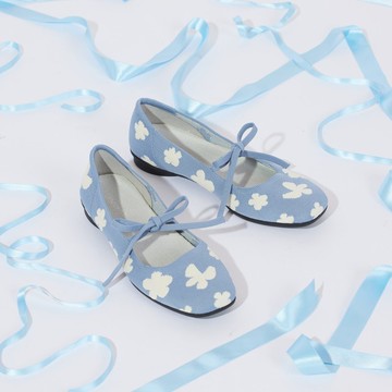 小花平底鞋 藍花朵紋 | inooknit 專為亞洲女生設計的針織鞋