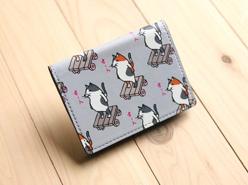 【FWL/四層小錢包】 貓咪姿態 燙銀貓掌 灰 藍 法國銀蔥 先染條紋