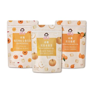 ① 冰糖菊花枸杞金盞花茶:255g/袋純淨系草本溫潤舒緩,澄黃金盞花與沁香菊花植萃,淡雅輕透香氣 自然甘甜。② 冰糖川貝水梨:255g/袋多汁水梨與清透冰糖溫火慢燉,御膳臻品 溫和調節,漢方萃取 茶湯輕透淡雅,回甘清甜 生津解渴。③ 冰糖川貝枇杷:255g/袋養潤食材淬鍊,草本清涼甘甜不苦澀。沁涼潤喉 生津止渴,使口氣芬芳。https://live.staticflickr.com/65535/54686147000_dea906b6ba_b.jpghttps://live.staticflickr.com/65535/54942847631_02a55129d2_b.jpghttps://live.staticflickr.com/65535/54686147030_cafa95d5a9_b.jpghttps://live.staticflickr.com/65535/54686055519_71c9bf04ed_b.jpghttps://live.staticflickr.com/65535/54686055539_78cb7be90a_b.jpghttps://live.staticflickr.com/65535/54686146990_25d98d0b46_b.jpghttps://live.staticflickr.com/65535/54686146985_3733075670_b.jpghttps://live.staticflickr.com/65535/54838451880_b5900f08a7_b.jpghttps://live.staticflickr.com/65535/54838127891_dd736a4292_b.jpghttps://live.staticflickr.com/65535/54838356329_81476c3f71_b.jpghttps://live.staticflickr.com/65535/54838127866_4864d3786b_b.jpghttps://live.staticflickr.com/65535/54837263087_2ee4feda23_b.jpghttps://live.staticflickr.com/65535/54838372453_da86f0fd3d_b.jpghttps://live.staticflickr.com/65535/54838372448_106095a4d9_b.jpghttps://live.staticflickr.com/65535/54838451820_6bfcfc4f0f_b.jpghttps://live.staticflickr.com/65535/54838356319_85bfa0f606_b.jpghttps://live.staticflickr.com/65535/54838356289_a4652bc865_b.jpg