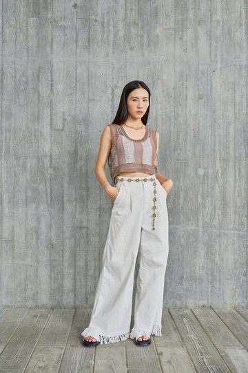 (S) clane高腰質感棉質寬鬆杏色長褲