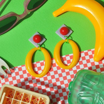 美式撞色黃圈圈耳環/ 壓克力耳環