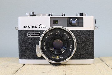 ★經典老式底片相機★『 KONICA C35 flashmatic 』○關於 KONICA C35 flashmatic○KONICA C35 是 Konica 公司於 1968 年推出的底片相機。KONICA C35 Flashmatic 作為 C35 的衍生型號,於 1971 年推出,是可安裝閃光燈的後繼機種。這款相機的暱稱是「Journey Konica」顧名思義,「Journey」這個詞意指以「可以輕鬆攜帶去旅行的隨身小巧相機」為概念設計。是一款非常輕巧的底片相機。雖然體積小巧,卻能拍攝 35mm 全片幅,並搭載測距儀(連動測距儀),以及程式 AE 式的曝光控制,堪稱經典之作。鏡頭搭載的是 Hexanon (Hexanon)38mm F2.8 的定焦鏡頭,成像品質極佳,拍出的照片非常美麗。由於曝光控制採用程式 AE,即使不懂快門速度和光圈的知識,也能透過按下快門即可拍出美麗的照片。在 Mina,為了讓初學者也能安心使用,除了提供當時的說明書影本,更附上 Mina 原創的使用教學指南和底片基礎知識指南。此外,為了讓初學者也能安心使用,除了當時的使用說明書影本,還附上 Mina 原創的使用指南和底片基礎知識指南。○ 特點 ○・復古可愛的外觀!・程式 AE 自動曝光控制。・使用一般底片(35mm 底片)。・採用紮實的雙重影像對焦方式進行對焦。○ 商品狀態 ○ 狀態等級:A 優秀品 外觀:雖有細微刮痕, 惟整體狀況良好。 已酒精清潔、更換蒙皮 請參考圖片確認。 光學系統:觀景窗已拆解清潔,無塵埃、黴斑、霧氣。鏡頭已拆解清潔,無塵埃、黴斑、霧氣。 功能: 測光表運作正常。 蒙皮已更換。 對焦已調整。○ 附件 ○當時說明書影本本底片相機使用教學指南底片基礎知識指南〇 已取得古物商許可證 〇我們已依法取得古物商許可證,請安心享受老式底片相機的樂趣。古物商許可證【第 303292008176 號】東京都公安委員會取得者:株式會社 Ad Live 中村一子