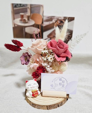 ✨招財永生花名片座,自用招或送禮都是不錯的禮品唷💕🌹永生名片座可拿來放名片、照片、明信片皆可唷💕(色系款式皆可客製詢問)🌹木座可加購雷射雕刻字、圖檔唷(讓你送禮送進心坎裡🫶)⚠️雷射雕刻的字和圖檔建議簡單清晰點~刻出來的成品會比較美麗唷💕~如有雷射需求,請先詢問(每片木片紋路及樣子不會一模一樣唷🙏)~版娘會挑比較適合的木片來雷射雕刻客製唷🥰✨入厝禮/生日禮/開幕禮/新婚禮物/婚禮小物/婚禮配件/永生花戒指/永生花耳環/畢業禮品/畢業花束/母親節禮品/及各式節日禮品客製✨⚠️客製化商品無法取消唷,請確認細節及價格後再下單,感謝♥️🪧如急單需先提前雙方先溝通好,並提前下單以免耽誤後面交貨日期唷💕,下單後會立馬幫您備料,以利後續製作~並提前告知預收貨日期🪧一般客製7-14天,急單請先私訊確認日期是否來的及唷,或請提前1-2禮拜前訂購🪧花材會因季節更替變動,如遇花材短缺,設計師會以其他花材替代唷,可接受再下單🪧每個成品不會一模一樣唷,設計師會認真努力設計出讓您滿意的商品,有任何需求請跟設計師溝通細節唷💕🌷ShiningMoonFloral 永生花禮品皆由版娘手工製作🌷使用日本大地永生玫瑰花材、及日本和其他進口花材手工製作每朵花的大小皆有些許差異唷,每個成品不會一模一樣唷,但色系都可以詢問唷💕🌷永生花禮品自用或送禮皆可唷💕⚠️運送過程中,難免會花材掉落,介意勿喊唷🙏,感謝💕⚠️高標者請三思後再下單✨開箱請記得錄影,已確保雙方權益♥️🎀若商品有任何問題,請先私訊詢問唷🙏,感謝💕💟永生花保養方式💟🌹永生花保存方式正常擺放可放置觀賞1~2年(需擺在通風處),如環境潮濕可能會導致花朵潮濕變質唷。🌹永生花保持方式,如有灰塵,可用吹風機弱冷風輕輕吹即可🌹永生花請不要直曬太陽唷,不需要澆水唷✨歡迎追蹤我們✨🌷Line 官網:@000zykep🌷Instagram |shiningmoonfloral