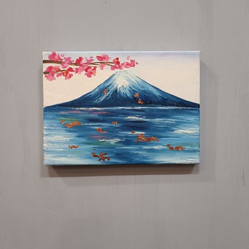 富士山原創藝術厚塗油畫風景藝術花由 Verafe