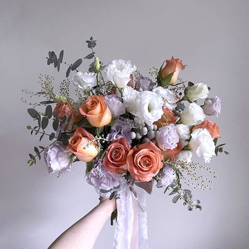 【鮮花】粉橘淺紫白色玫瑰洋桔梗自然風美式鮮花捧花
