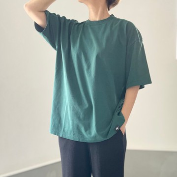 【無性別】水洗染料加工加大版型T恤。這款加大版型的T恤,男女皆可穿著。採用100%純棉加大版型T恤,經過水洗染料染色(顏料染色)並施以生物水洗處理。帶有如古著般的獨特質感與刷舊感,即使是素色也極具存在感。這是一款您可以享受隨著洗滌次數增加而褪色、隨之變化的獨特色彩的T恤♪左前方下襬處飾有小巧的品牌標籤!布料為6.5oz的平紋針織,後領口至後肩皆使用同布料加固,因此不易變形,相信能長久穿著。適合搭配成情侶裝、姊妹裝,亦適合作為禮物^^材質:100%棉推出3種顏色,3種尺寸。顏色:綠色M號:胸寬61cm 肩寬57cm 衣長73cm 袖長23.5cmL號:胸寬64cm 肩寬62cm 衣長76cm 袖長24cmXL號:胸寬67cm 肩寬64.5cm 衣長79cm 袖長24.5cm照片中灰色為女性身高163cm著L號。藍色與綠色為女性身高163cm著M號。尺寸誤差±2cm,敬請見諒。※穿著及處理時,請務必確認洗標與注意事項標籤。※因水洗染料加工特性,遇水或摩擦時,可能會產生褪色或染色轉移。※因產品施以水洗染料生物處理,染色效果與商品尺寸可能存在個體差異。※因與實體店面同步販售,您購買的顏色尺寸可能無法備貨。※因拍攝時光線影響,以及您使用的電腦螢幕環境等因素, 實際顏色可能與圖片略有差異。