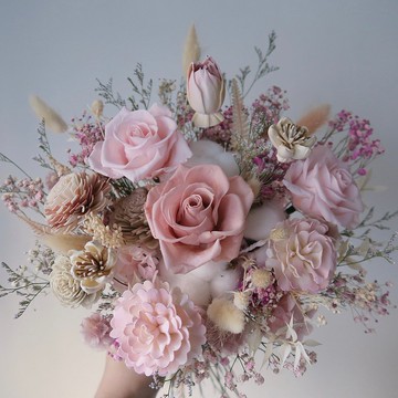 煙燻復古粉永生花捧花 l 橘粉色系 l 外拍婚紗 婚禮用品 新娘捧花