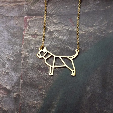 鍍金摺紙風格鬥牛犬項鍊。