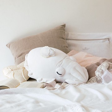 把眼睛看上去就好像睡得很香甜的烏賊製成有彈性的抱枕。除了有令人禁不住想抱抱的大烏賊外,還附有可愛小小的烏賊寶寶!可用來當午睡抱枕,適合放在床邊或沙發上,甚至是辦公室午睡時使用喔。抱枕本身不僅呈現了烏賊可愛的模樣,翻過面還能看到烏賊可愛的噴嘴被如實呈現了呢。將手輕輕壓在抱枕上可以感受到如同甜點大福般的軟Q彈性。睡著了的雙眼不是用印刷,而是以刺繡呈現,呈現高品質的精緻度。與烏賊寶寶擺在一起,就能傳達幸福給大家喔!**商品資訊**■ 商品內容:大型烏賊抱枕 x 1、小型烏賊寶寶 x 1■ 材質:外層布料 - 聚酯、聚氨酯 / 內裏 - 聚酯纖維■ 尺寸:大烏賊 - 長約 53 公分、寬約 31 公分、高約 20 公分 / 小烏賊 - 長約 12 公分、寬約 8 公分、高約 4 公分■ 產地:中國大陸