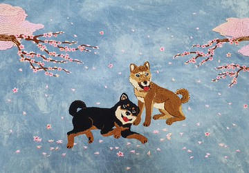 可愛手工刺繡開衫-棉、狗、櫻花