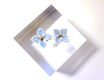 迷你花朵耳釘・耳環 淺藍色