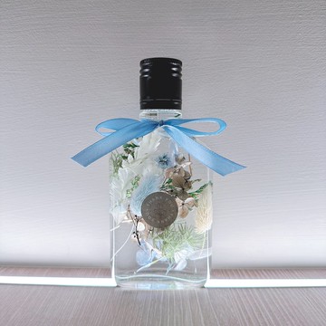 伊登花室 永生繡球花 玻璃扁酒瓶 乾燥花