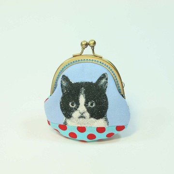 刺繡 8.5cm口金零錢包51-黑白貓