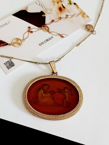 vintage jewelry 古董凹面雕刻天使與女神玻璃項鍊