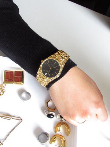復古黑色錶盤女士黃金手錶裝飾藝術風格,適合任何場合、情人節禮物、母親節禮物、節日禮物、生日禮物。品牌:格林精密材料:不鏽鋼背、10K 金填充表圈和帶鑽石的鍍金表背。長度:7.5"帶寬:0.7"中心裝飾品寬度:1.25"折疊式表扣必須放置新電池復古二手**復古服飾首飾保養小貼士**我們所有的 Vintage Jewelry 都擁有至少 20 年的獨特個性。許多 Vintage 單品都經過三層鍍層處理,這意味著它們更耐用。儘管如此,請妥善保管您的古董首飾,我們有一些提示需要記住:・ 將您的複古人造珠寶放入帶拉鍊的柔軟小袋中,以防沾染灰塵。・ 將您的古董首飾存放在乾燥、涼爽和無塵的環境中。・ 切勿將帶箔背襯的水鑽飾品浸入水中。・ 使用外用酒精或 Windex 作為清潔劑。・ 使用軟牙刷或蘸有少量酒精的棉籤。擠掉棉籤或軟牙刷上多餘的水分,使其幾乎不濕。・ 輕柔地刷洗,特別小心北極光石,因為它們很容易被劃傷。・清潔珠寶後,請確保它們完全乾燥後再收起,因為水分會導致珠寶變質。如有任何關於復古珠寶護理的問題,請隨時與我們聯繫。**=====**BOITE LAQUE 收集了所有特殊、獨特且獨一無二的複古珠寶,狀況良好,但可能會顯示出很少的二手標記。這些小標誌使每件復古單品都成為最有故事的珠寶,值得加入您的收藏。所有 BOITE LAQUE 復古珠寶均由專業珠寶商清潔和保養。**=====**