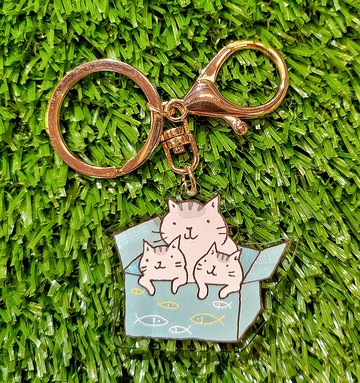 3貓小舖獨家鑰匙圈-藍紙箱貓(插畫家:貓小姐)(最長邊:5cm)