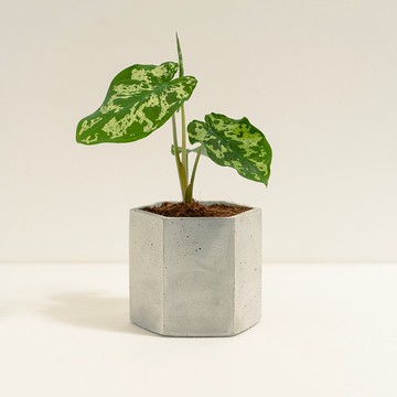 **迷彩芋│Caladium praetermissum│****◼︎ 植物介紹**迷彩芋為天南星科,花葉芋屬,心型的葉片,由深綠、淺綠的底色,與不規則的奶油色斑點組合而成,構成一種獨特且亮眼的迷彩風格,非常具有觀賞性,作為環境綠化也是一個好選擇!https://s3.ap-southeast-1.amazonaws.com/cdn.store-assets.com/s/809128/f/10768072.jpg**◼︎ 商品內容**植株高度:約20cm盆器規格:三寸六角盆,直徑9cm、高8.5cm材質:白水泥包裝:紙盒包裝**◼︎ 光線指南**喜歡明亮的散射光到半日照環境 ,適合放在面東的窗邊,享受較為緩和的晨光。**◼︎ 澆水指南**觀察介質表面呈微乾狀態後,再一次澆透,需觀察實際狀況做調整。夏季時水分蒸散較快,可能會縮短澆水間隔。 **◼︎ 推薦加購**特製通用介質https://www.pinkoi.com/product/5Ry7zgRuhttps://cdn01.pinkoi.com/product/5Ry7zgRu/1/800x0.jpg *小提醒:由於農場大規模栽培,難免會有些許葉傷,出貨時會盡量挑選,但無法確保葉片零瑕疵,可以接受再下單喔!