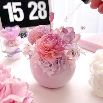 -商品內容-●花材:擴香花、永生繡球花、乾燥花材●商品尺寸約:長12.5cm x 寬12.5cm x 高13cm●贈送5ml香氛油(香氣隨機)-花禮維護-● 永生花、乾燥花避免太陽直射、碰水、放置陰涼處可以擺放兩年● 乾燥花受潮發霉請以酒精擦拭● 如遇灰塵沾粘,請以吹風機調製低溫低風速吹拂● 擴香花可吸收香氛油、香水散發香氣 注意事項:● 此商品配送範圍僅限台灣本島 (不含機場、外島),如出貨時發現地址無法配送,將會自動取消訂單。●照片為實品拍攝,但因手工製作及花材形態,無法保證商品完全一樣。●乾燥花本身脆弱,開箱難免會發現少許花屑掉落,超完美主義者請考慮仔細再下單●因為花材皆為季節性若遇缺貨,我們會在色系跟整體樣貌不變的狀況下會為您設計搭配適當的花材。●乾燥花、永生花為天然素材,運送時難免會有碰撞而少許掉落,我們會盡力妥善包裝保護商品。●若您收到商品有任何問題,請儘速與我們聯繫。退換貨說明:● 本商品無法提供退換貨服務,敬請見諒● 若發現商品有瑕疵或破損,請在收到後連同外箱及內包裝一併拍照回傳,我們會立即為您處理