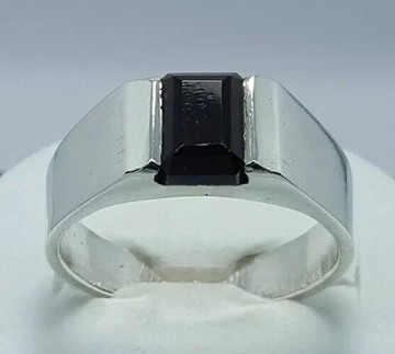 男士葉門Aqeeq戒指 純淨shifat al abad Kabadi黑瑪瑙 925純銀戒指