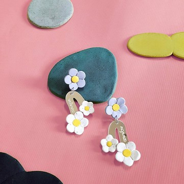偶數花朵系列 耳環 - 鏡射 花朵 壓克力 小白花 ( 耳針 / 耳夾 )