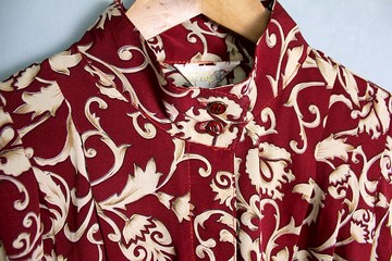 FOAK古著 復古紅巴洛克花紋立領襯衫