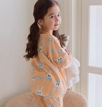 粉橘緞帶兔兔-【寬鬆】植纖衣長袖童裝-K62209