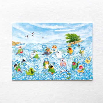 Rolia's 手作 【粉蝶花系列】鸚鵡/鳥/山雀 明信片