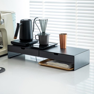 日本霜山 碳鋼製雙格抽屜電腦螢幕架(加長款)-多色可選