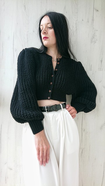 羅紋針織露臍上衣開衫定制。顏色(如圖所示):黑色。我們的模特穿著 S 碼。紗線成分:50% 羊毛,50%壓克力。用小木扣固定。剪影:身體一致性。袖子的類型:燈籠,粉撲,鑲嵌。領型:圓領關心。30度手洗。在平坦的表面上進行水平乾燥。