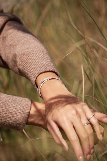 純銀鍛敲質感手鐲│尺寸:寬度約 2.5mm,適合手圍16-19cm│材質:純銀 999 silver│純手工製作,自然質感造型不會與照片完全相同,製作時間7 - 20天不定│有預定日期者可先詢問 ^^-----------------------------------透過鍛敲與扭轉的方式製作質感細節,每一面都是不同的樣貌,可客製想刻上的祝福或密碼在其中。溫馨提醒:- 下單完成後約7 - 20天不定(不含假日)。- Nashly飾品皆為手工製作,每件商品會有些許差異。-本產品無提供售後服務,若有保養與調整問題歡迎私訊詢問 !