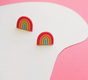 小彩虹耳釘 手工軟陶耳環/耳夾 rainbow/ studs 禮物 特別