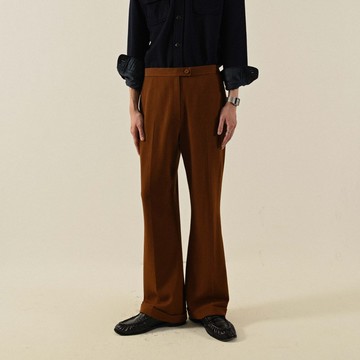 復古斜紋感闊腿褲 | 褲腳小卷邊設計直筒寬鬆 | 高腰休閒基礎長褲