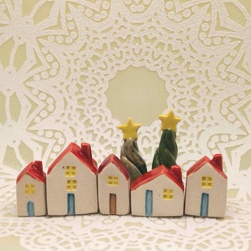 一組七件 五間小屋子 兩棵小聖誕樹每間另付上長2cm金屬線(可自行黏合)用作花插配 襯多肉植物或小盆栽大約尺寸 大屋子高度約2cm 小屋子最小約1cm 聖誕樹約2-3cm質材 陶土 高溫釉 保養方式 清水洗淨擦拭即可陶製商品均為創作者手工製作完成,每間都不一樣,不可能非常完美(如有完美主義者請謹慎購買)環保包裝,商品不做過度包裝寄送時以保護商品為包裝準則如為送禮請備註說明,會特別留意