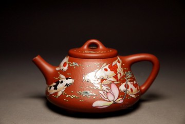 【九如魚】純手工製壺 吳郎大師工筆釉上彩 黃龍山朱泥大紅袍