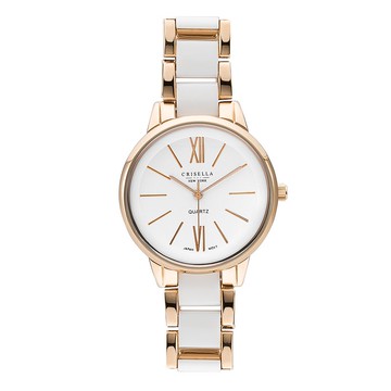 Folli Follie 29毫米 特殊寶石切割鏡面 精鑲水晶時標 陶瓷錶帶腕錶(玫瑰金X白 FF230437)