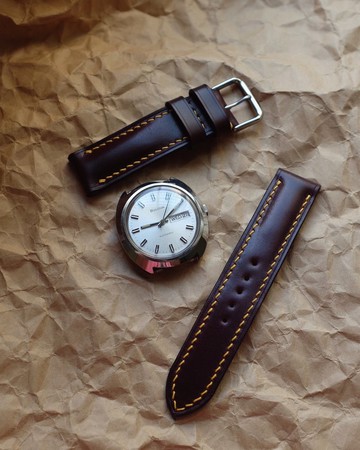 馬臀皮稱為皮革中的鑽石是極高品質的皮革,質地細膩富有光澤用來製作錶帶所呈現的質感極佳。一匹馬只有臀部一小片所以皮革單價也是一般牛皮的數倍之多所以格外珍貴。*範例圖為立體款錶帶使用馬臀皮革(表面層)產品資訊-皮革:馬臀皮 Cordovan 縫線:手縫麻線錶帶邊緣:義大利邊油錶扣:不鏽鋼 **結帳時請告知下述客製資訊**1.皮革顏色2.縫線顏色3.錶扣款式/顏色4.錶帶寬度5.錶帶邊油顏色**色卡參考**https://farm66.static.flickr.com/65535/51173159437_94536bc965_z.jpg**縫線**https://farm66.static.flickr.com/65535/51173159492_f69a5a1966_z.jpg**下單前請注意:**1.皮革為自然產品,因保留皮革最天然的狀態,表面可能會有紋路。2.照片與實品,由於螢幕與相機的不同,顏色必有落差,以實品為準。3.如無法接受上述情況,請勿下單
